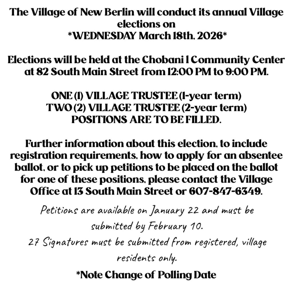 Please contact the Village office at 607-847-6389 with any questions.